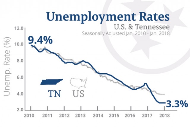 Tennessee Starts 2018 With Continued Low Unemployment