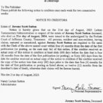 PUBLIC NOTICE – NOTICE TO CREDITORS – ESTATE OF JEREMY SCOTT SUTTON