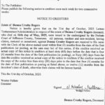PUBLIC NOTICE – NOTICE TO CREDITORS – ESTATE OF DONNA CROSBY ROGERS