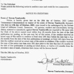 PUBLIC NOTICE – NOTICE TO CREDITORS – ESTATE OF STEVEN TAMBORELLO
