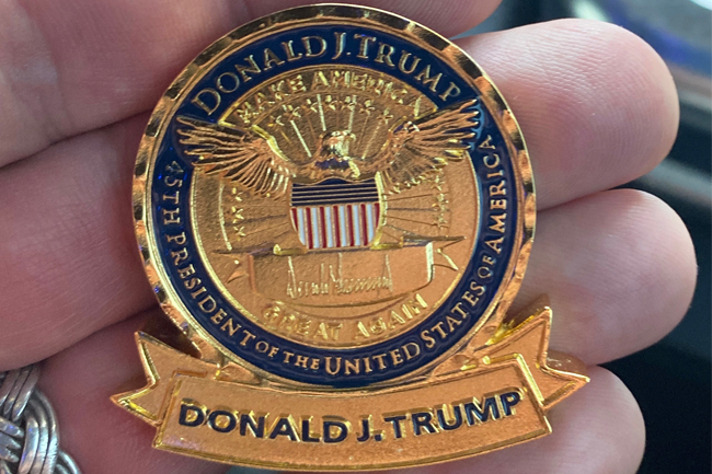 President Donald Trump presented Tennessee House Republican Caucus Chairman Jeremy Faison with a challenge coin for son, Tucker
