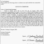 PUBLIC NOTICE – NOTICE TO CREDITORS – ESTATE OF DAVID SCOTT FREELAND