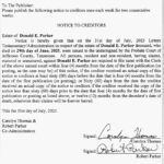 PUBLIC NOTICE – NOTICE TO CREDITORS – ESTATE OF DONALD E. PARKER