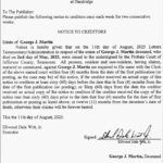 PUBLIC NOTICE – NOTICE TO CREDITORS – ESTATE OF GEORGE J. MARTIN