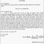 PUBLIC NOTICE – NOTICE TO CREDITORS – ESTATE OF JOHN D. NOE