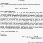 PUBLIC NOTICE – NOTICE TO CREDITORS – ESTATE OF BETTY LOWERY PRATT