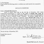 PUBLIC NOTICE – NOTICE TO CREDITORS – ESTATE OF DONALD OLIN LUCIA, Sr.