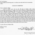 PUBLIC NOTICE – NOTICE TO CREDITORS – ESTATE OF KAREN L. KOOP