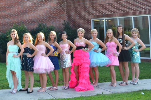 Once the queen was crowned the crowd’s attention was called for a special half-time activity. Coming to the field were Allison Belissimo, Twana Mullins and Sarah Hutsell, who are the wives or significant others of the assistant football coaches. They participated in the Dizzy Bat game with the winner receiving a very special prize.