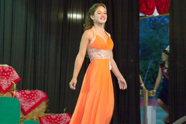 Fairest of the Fair opened with a dance number led by 2013 Fairest of the Fair Katelyn Inman. The field of young ladies also competed in evening wear and a question and answer portion. Contestants have been visible at the Fair throughout the various pageants, working to assure that needs are met. Following the competition sequences and individual introductions, the time had arrived for Inman to complete her final walk as Jefferson County Fairest of the Fair and pass the crown to the next winner.