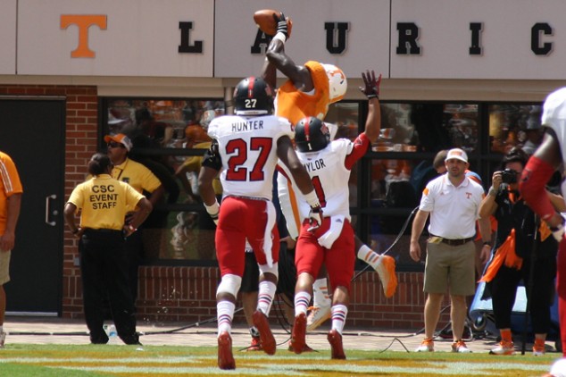 Five star freshman running back, Jalen Hurd, would lead the ground attack for the Vols with 87 yards on 23 carries. Hurd also scored his 2nd career touchdown in the 1st quarter from 4-yards out. Senior, Marlin Lane, finished with 54 yards on 14 carries.
