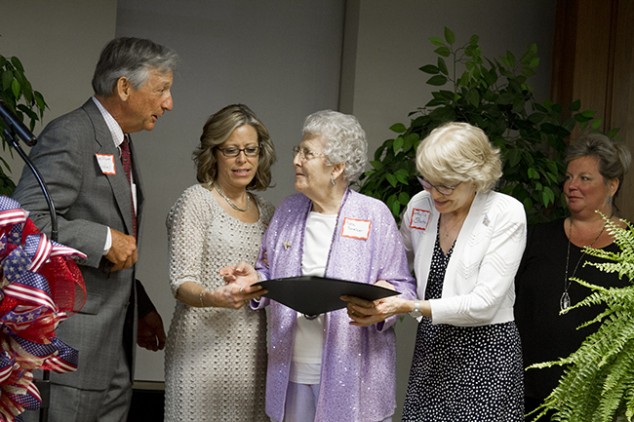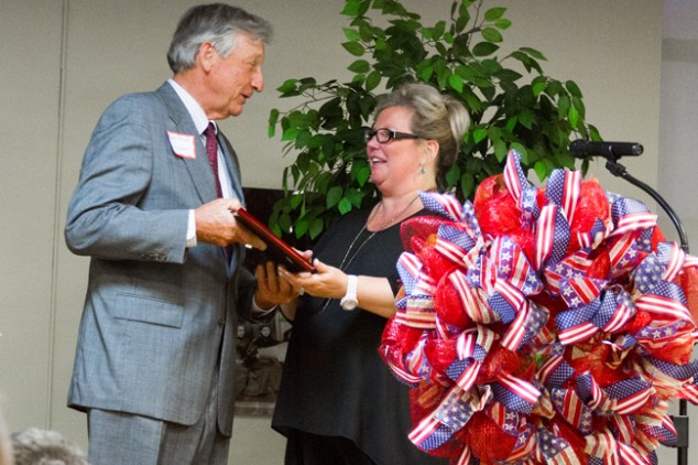 Chairwoman Paula Rugel Gibson gave the Welcome and Dr. John J. McGraw offered the Invocation. The Presentation of Colors was given by the Jefferson County High School JROTC and Harry House performed the National Anthem. Major Russell Turner led the Pledge of Allegiance and 1st Vice Chair Barry Fain recognized local, State and National dignitaries. Vickie Forgety presented Claire Crouch with the Barbara McAndrew Award. The Lifetime Achievement Award was given to Senator Frank Niceley and Senator Niceley also read a Senate Proclamation for Ray Smelcer, which was presented to his family.
