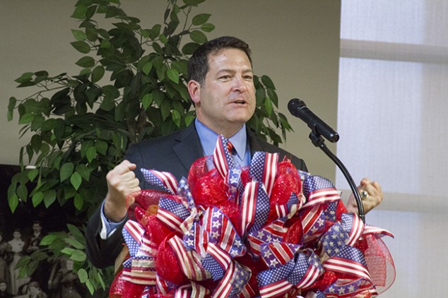 The Jefferson County Republican Party hosted their annual Lincoln-Reagan Day Dinner on May 15, 2015 at Carson Newman University. St ate Senator Mark Green, MD, representing the 22 district, was the Key Note Speaker for the evening. Beyond his outstanding record of military service and founding a highly successful company, Senator Green has the unique distinction of having met and spoken with Saddam Hussein during the time of his capture, having served on the team that precipitated that event. Green spoke of leadership and the need for the party to connect on a personal level with constituents. He also told some anecdotal stories of his conversation with the former leader of Iraq and his own time in that war zone. Senator Green was introduced by Judge Duane Sloan.