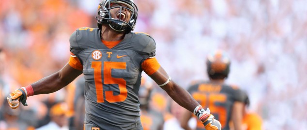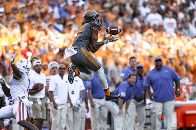 KNOXVILLE, TN - SEPTEMBER 24, 2016 - wide receiver Jauan Jennings #15 of the Tennessee Volunteers during the game between the Florida Gators and the Tennessee Volunteers at Neyland Stadium in Knoxville, TN. Photo By Hayley Pennesi/Tennessee Athletics