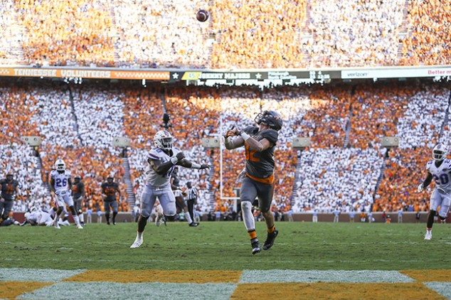 KNOXVILLE, TN - SEPTEMBER 24, 2016 - tight end Ethan Wolf #82 of the Tennessee Volunteers during the game between the Florida Gators and the Tennessee Volunteers at Neyland Stadium in Knoxville, TN. Photo By Hayley Pennesi/Tennessee Athletics