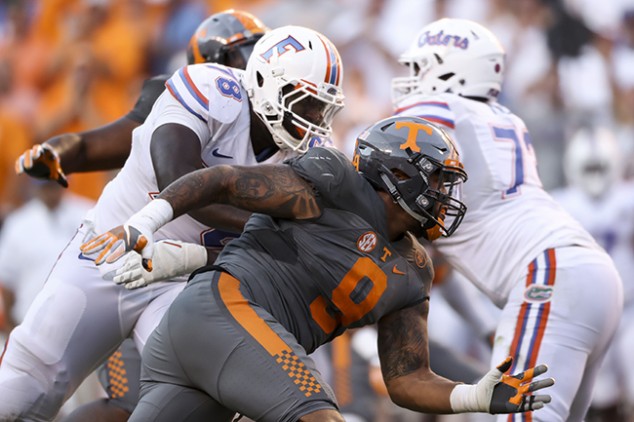 KNOXVILLE, TN - SEPTEMBER 24, 2016 - defensive end Derek Barnett #9 of the Tennessee Volunteers during the game between the Florida Gators and the Tennessee Volunteers at Neyland Stadium in Knoxville, TN. Photo By Donald Page/Tennessee Athletics