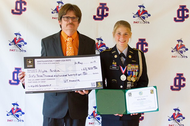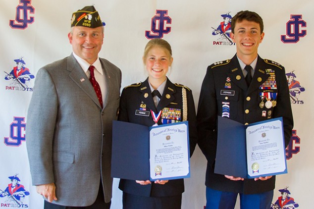 VFW Post 3380 from Dandridge recognizes Army JROTC Cadets Alyse Purdue and Stone Stephens, presented by Major Russell Turner