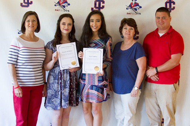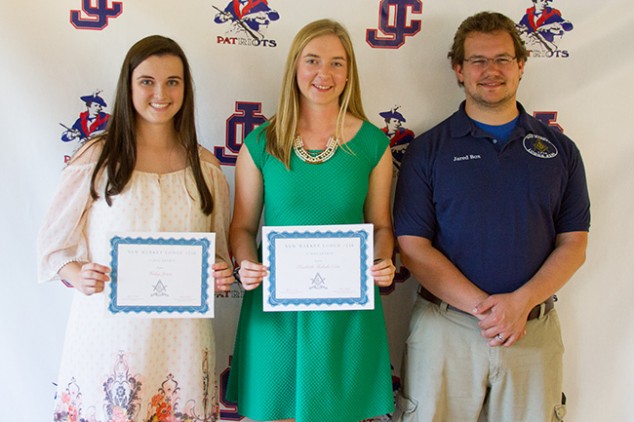 New Market Masonic Lodge Scholarship Recipients Haley Jones and Elizabeth Cain with Presenter Jared Box