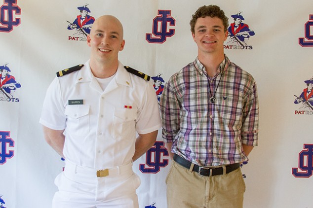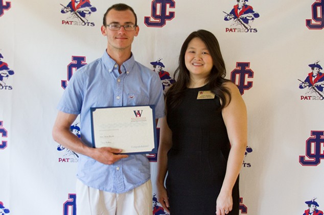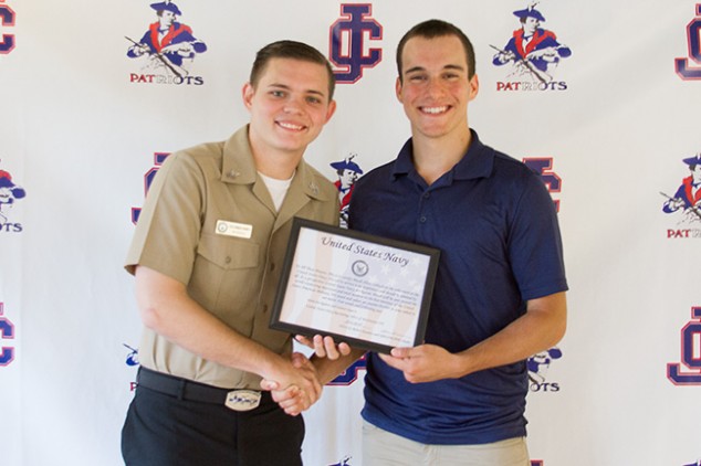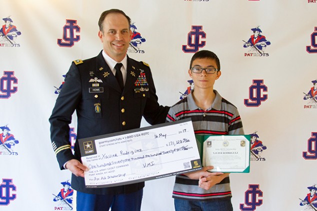 Army ROTC Scholarship from Virginia Military Institute recipient Xavier Rodriguez, presented by Lieutenant Colonel Steven Howe