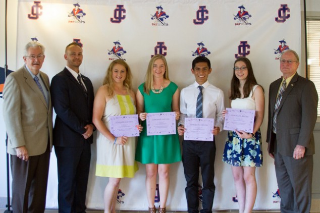 Dandridge Ministerial Association Scholarship Recipients Greta Linley, Elizabeth McCormick, Tyler Corum, and Austin Kirkpatrick with John Wilson