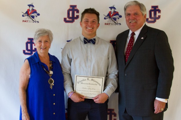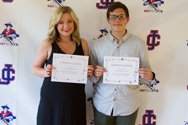 Jefferson County Chamber of Commerce Scholarship Recipients Ashton Fritz and Bryce Bissell with Derrick Collins