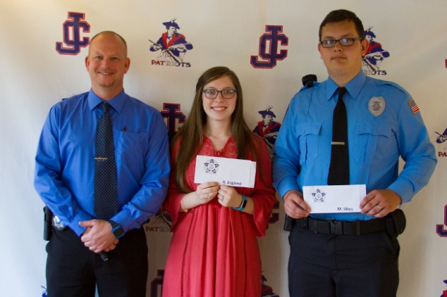 Fraternal Order Police Lodge # 61 Scholarship Recipients Kierra England and Matthew Sikes with Jim Potts