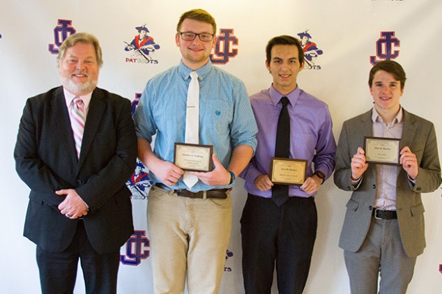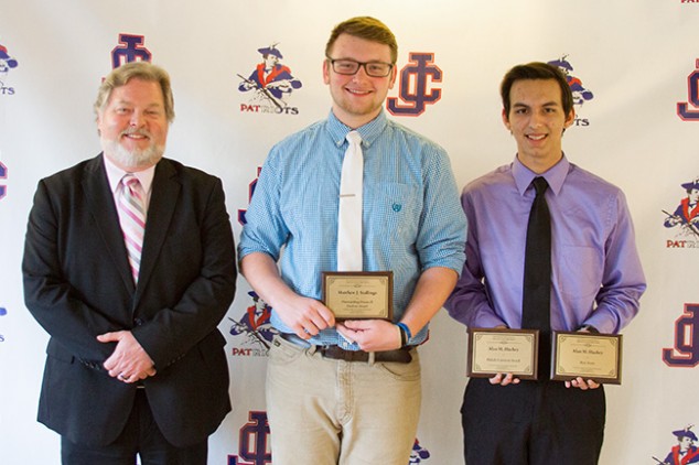 Alan Hachey, Recipient of the Blakely Cameron Performing Arts Award, Drama II Outstanding Student Matthew Stallings, and Best Actor Alan Hachey With Adviser Bryan McCampbell