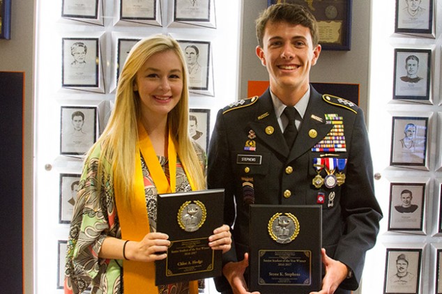 Army Reserve National Scholar Athlete Award recipients Stone Stephens and Kaylee Tollefson, presented by Staff Sargeant Alejandro Moreno