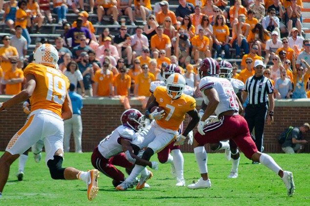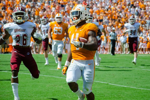 The first quarter started out less than stellar, as neither team got on the board. The Volunteer offense struggled against the Minutemen Defense, which has been deemed one of the worst in the country.