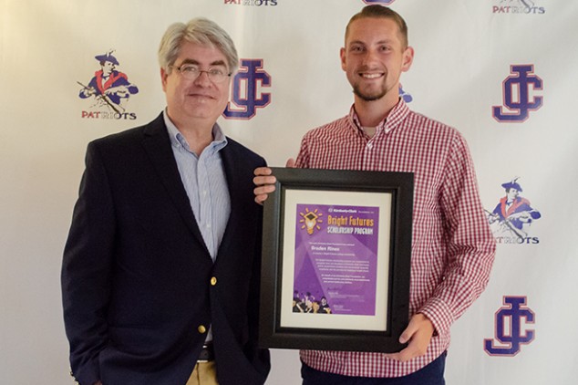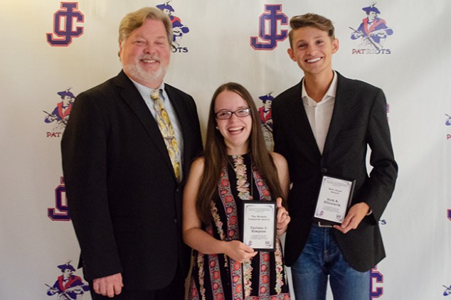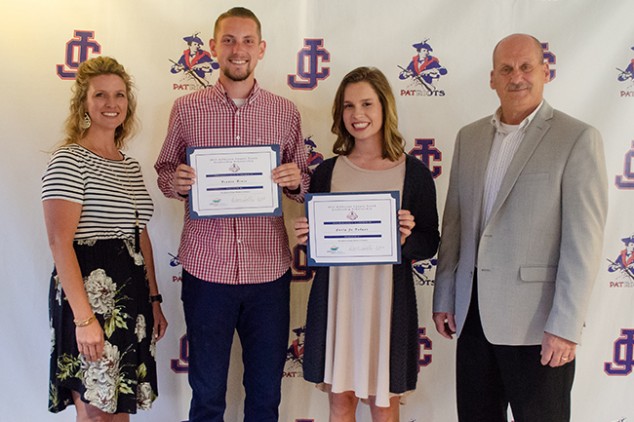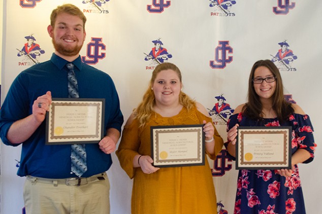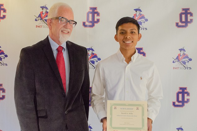Jefferson County Chamber of Commerce Scholarship Recipients Braden Rines and Carly Jo Dobyns with Darrell Helton