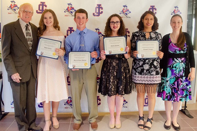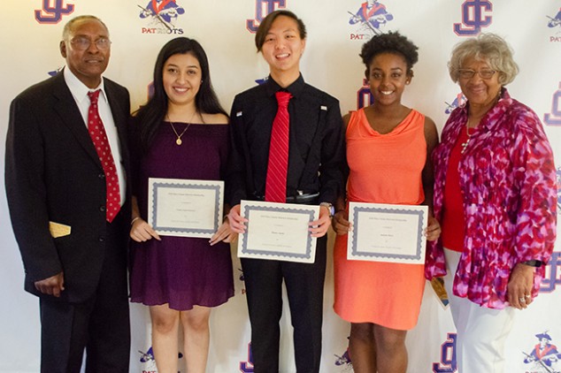 Citizens for Justice, Equality, and Fairness Scholarship Recipients Cinthia Delgado-Martinez, Tanner Austin, and Jaelynn Davis with Calvin Ballinger and Peggy Dockery