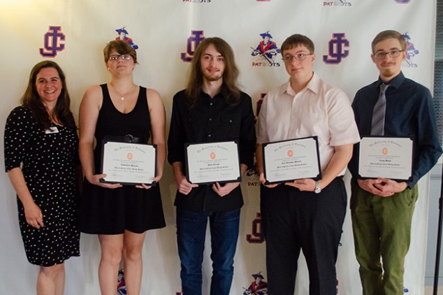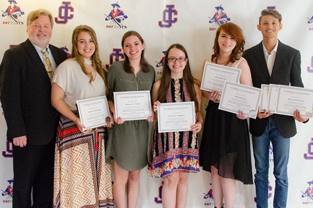 JCHS Forensics Team Kaitlyn Knight, Outgoing President, Kirsten Pullen, Outgoing Vice President, Grace Lee, TN High School Speech and Drama D4 Champ, Seth Ellsoworth, Outgoing Officer with Bryan McCampbell