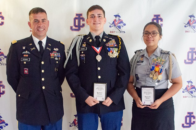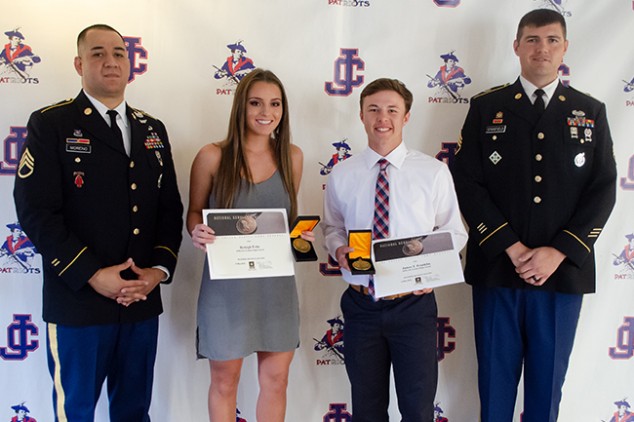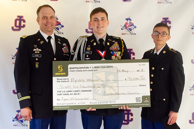 Dyvon Weaver, Carson Newman ROTC Scholarship recipient pictured with Lieutenant Colonel Steven Howe and Carson Newman University Cadet Redriguez