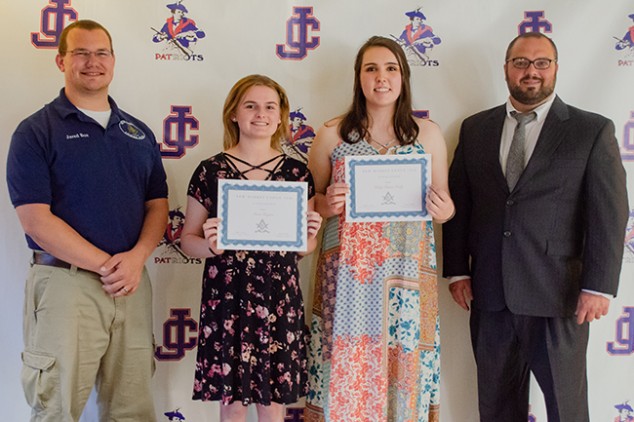 New Market Masonic Lodge Scholarship Recipients Marti Ragers and Kaley Nicely with Jared Box and Johnathan Bowers