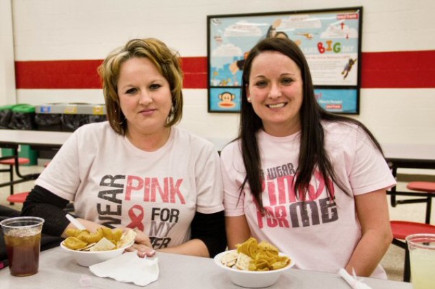 Cindy Williams, Doni Caldwell enjoying dinner at the White Pine Chili Fundraiser - Staff Photo by Robin Archer