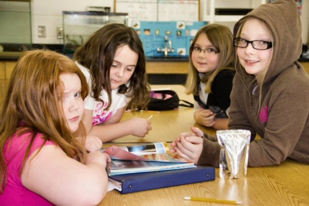 Kimberly Bingham 9, Carly Bradley 8, Taylor Sims 8, Sarah Miller 9 enjoy doing science experiments the most! - Staff Photo by Robin Archer