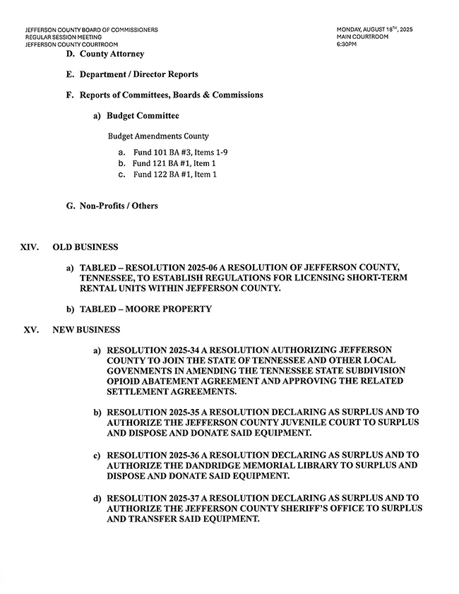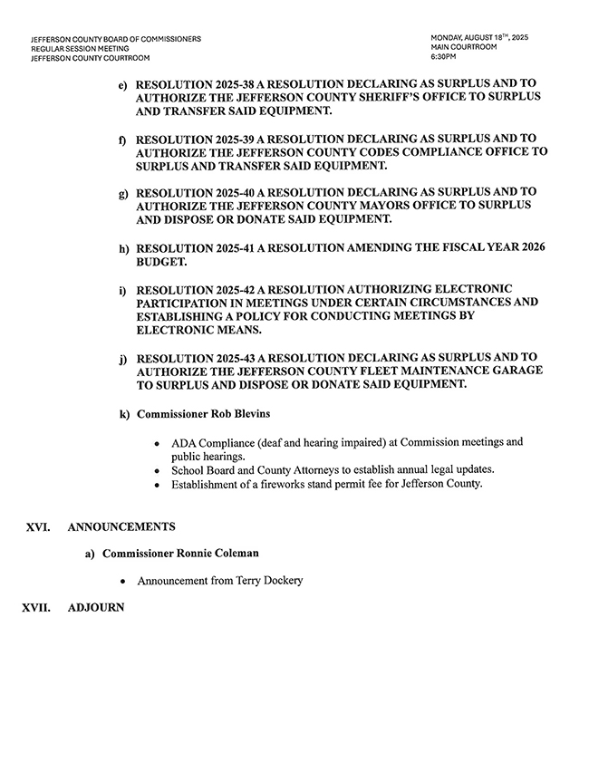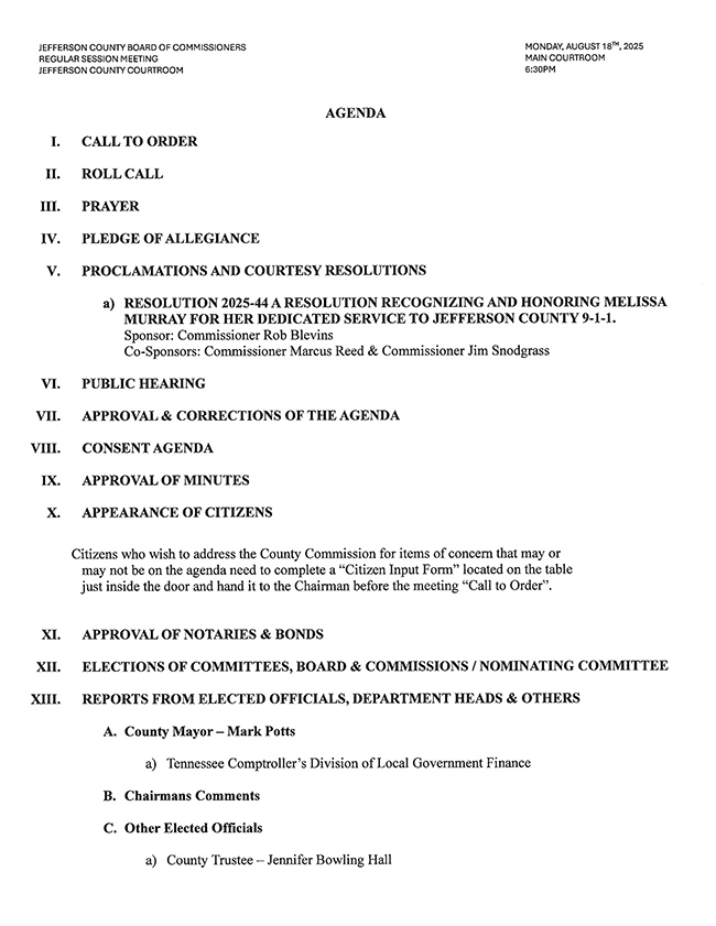 PUBLIC NOTICE – Jefferson County Board Of Commissioners Regular Session Meeting Agenda, August 18, 2025