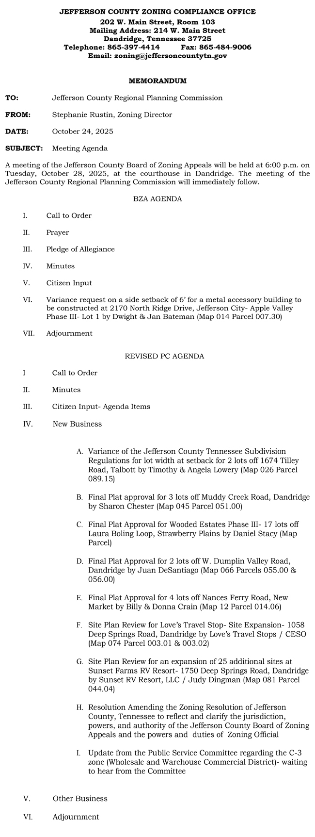 PUBLIC NOTICE – Jefferson County Board of Zoning Appeals and Jefferson County Regional Planning Commission Meeting, October 28, 2025
