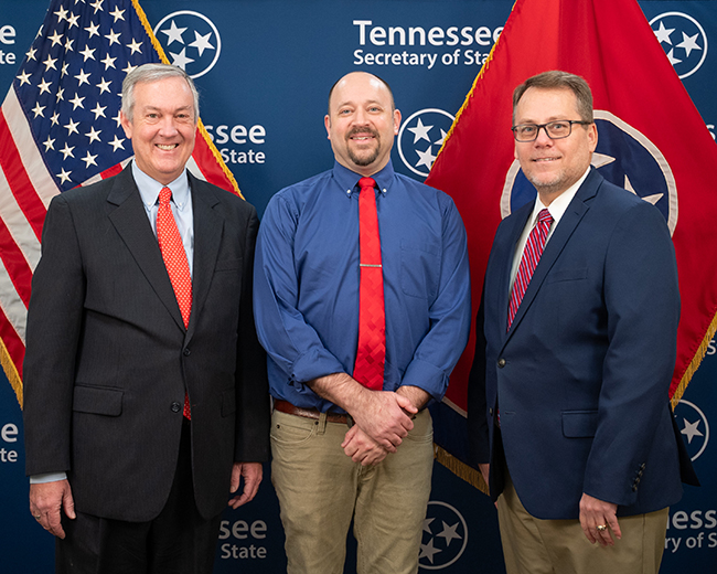 Tennessee Secretary of State Tre Hargett and State Coordinator of Elections Mark Goins today recognized Jefferson County Administrator of Elections Nathan Bugg for passing the Administrator of Elections Certification Exam.