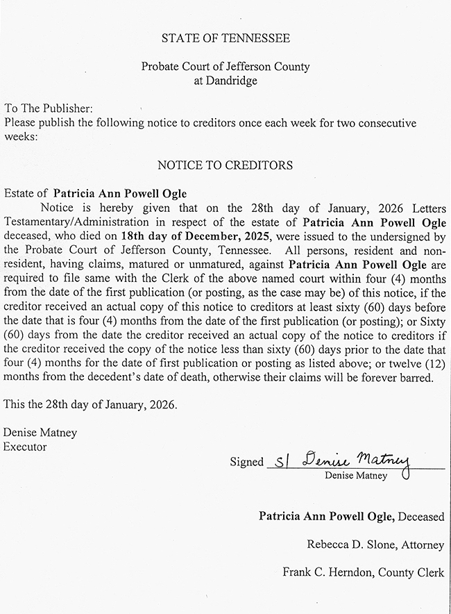 Jefferson County, Tennessee — Mayor Mark Potts has declared a State of Emergency immediately…