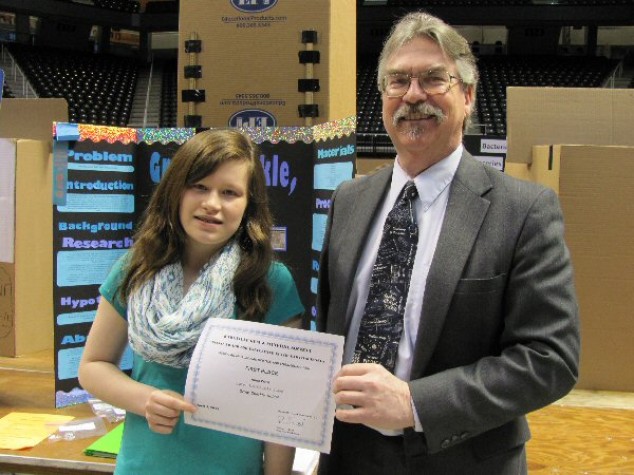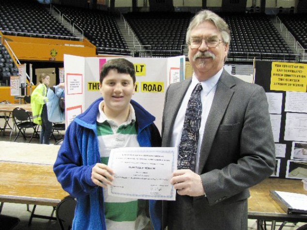 Zane Humbard of Jefferson Middle School received Honorable Mention for his project entitled “Asphalt: Which Car Product Will Break Down Asphalt the Fastest?”