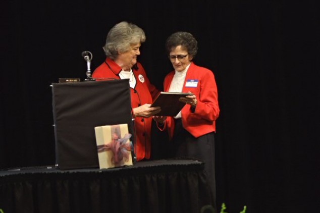 Two Jefferson County Republican women were honored with the Barbara McAndrew Jefferson County Republican Women Award. Vicki Forgety and Betty Fain made the presentations to Tamra Fain and Mary Ann French, respectively. Paula Rugel-Gibson presented Vicki Forgety the award for Republican of the Year.
